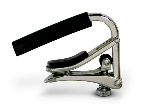 Ein Trigger-Capo ist ein spezieller Capo, mit dem sich die Saitenspannung der Gitarre anpassen und die Tonart ändern lässt, ohne die Finger zu bewegen. Er unterscheidet sich von anderen Capo-Typen durch seinen Mechanismus: Er verfügt über einen federbelasteten Auslöser, der das Anbringen und Abnehmen an der Gitarre schnell und einfach macht.