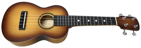 Die Sopran-Ukulele ist ein Musikinstrument, das auch als Standard-Ukulele bezeichnet wird. Es ist die ursprüngliche Ukulele und die kleinste von allen. Sie hat meistens eine Mensur von 13"/34 cm und eine Gesamtlänge von 21"/53 cm. Kinder beginnen mit dieser Ukulele zu spielen, aufgrund der Größe. Die Sopran-Ukulele hat den hellsten Klang aller Typen, und es ist wahrscheinlich der Klang, den du mit Ukulelen verbindest. Sie hat oft zwischen 12 und 14 Bünden, was einige Einschränkungen mit sich bringt.