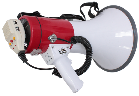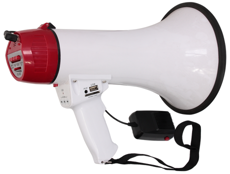 Auf Lager (50+) Stk€33,00€40,00Stückpreis /Nicht verfügbarMegaphone with detachable microphone, USB and SD card reader (45W)