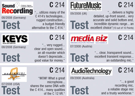 - Das C214 Großmembran-Kondensatormikrofon wurde als kostengünstige Alternative zur High-End C414 family entwickelt.