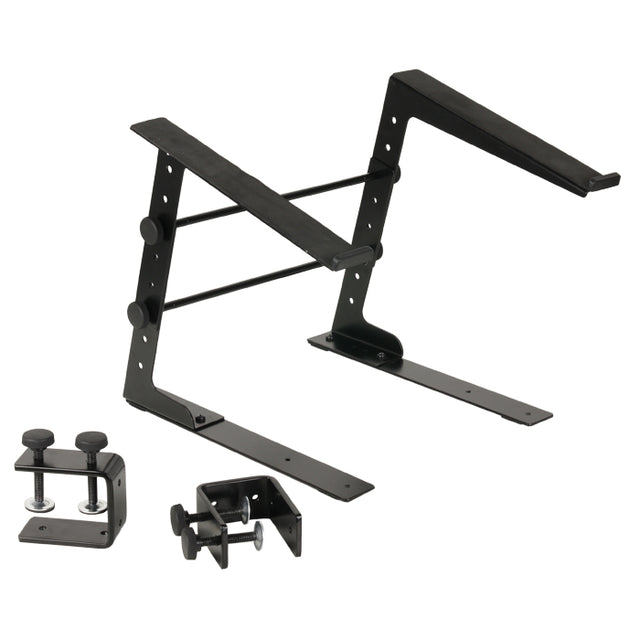 Laptopstativ von Adam Hall, das dank der einstellbaren Höhe volle Flexibilität für den professionellen DJ anbietet.