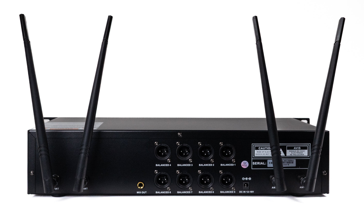 - Drahtloses Mikrofonsystem mit 4 Boom-Mikrofonen und einem einzelnen Standempfänger