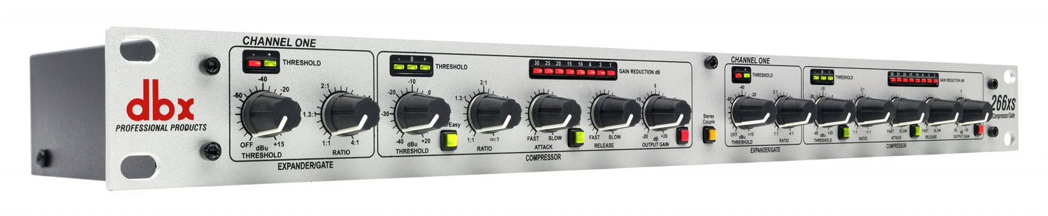 - Separate precision LED displays for gain reduction, compression threshold and gate threshold allow quick, accurate setup