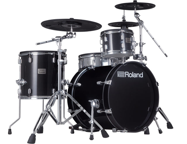 E-Drums aus Holz und verchromtem Gestell in voller Größe