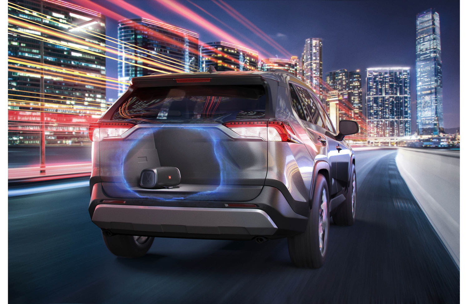- Delivers the same power as an 8" subwoofer when mounted in the docking station in the car.