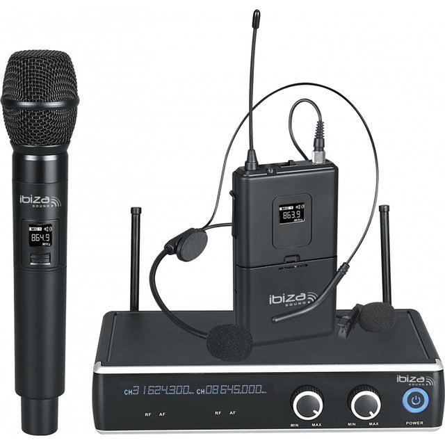 Dualer UHF-Empfänger mit Gürtelclip, Headset und Ansteckmikrofon