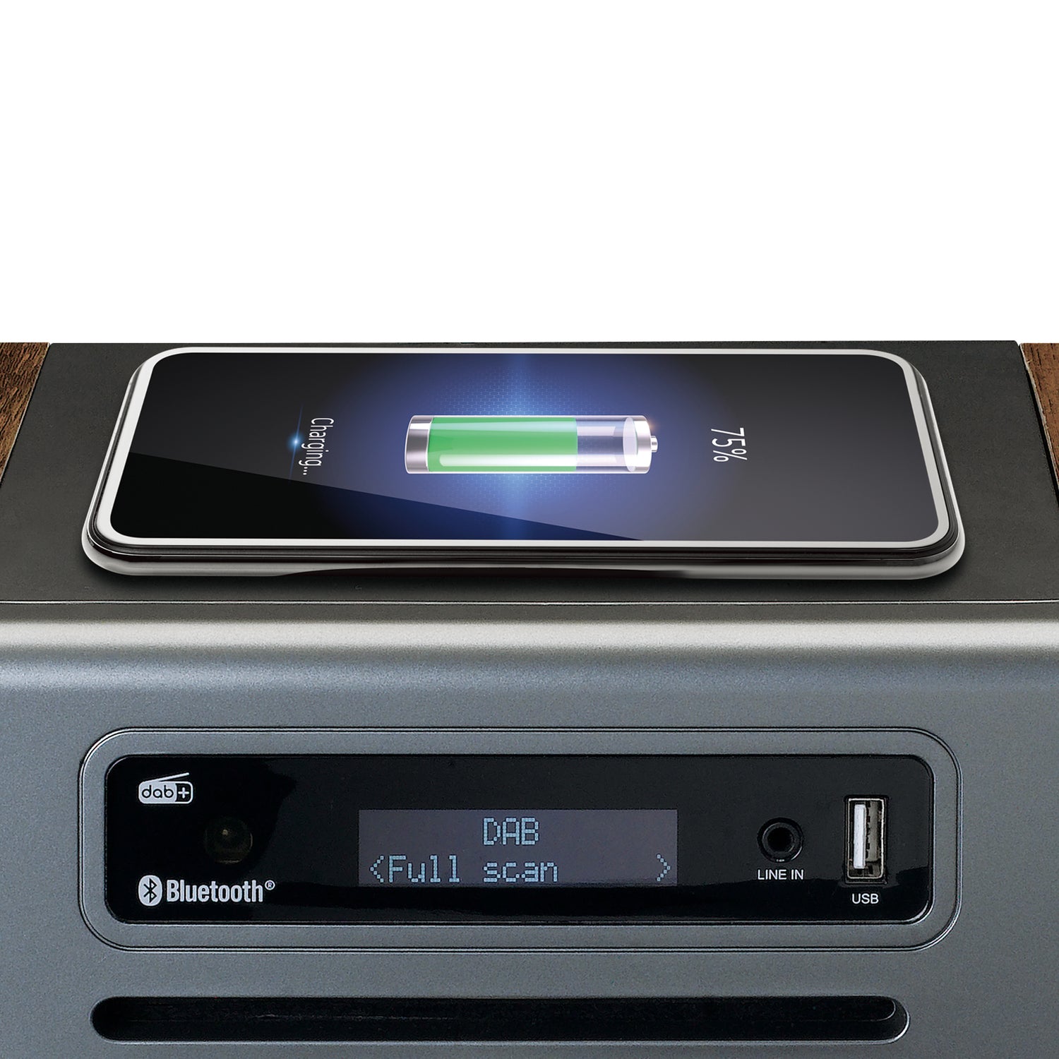 The radio receives DAB+ and FM frequencies and has a USB input and a CD player.