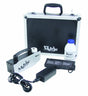 - Das Set beinhaltet einen wiederaufladbaren Akku (12 V), ein Ladegerät, Rauchflüssigkeit und einen Koffer.