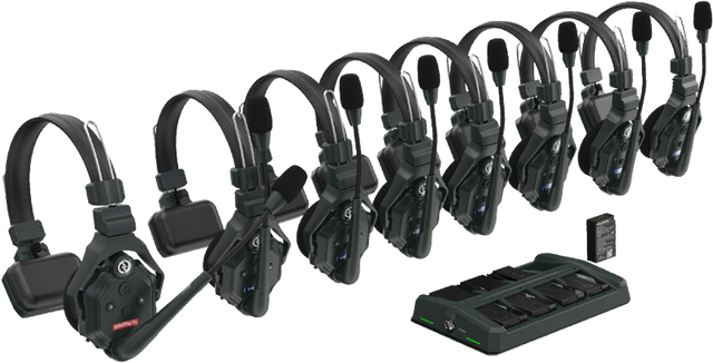 - Full duplex wireless intercom system with 8 headsets, DECT 6.0 technology.