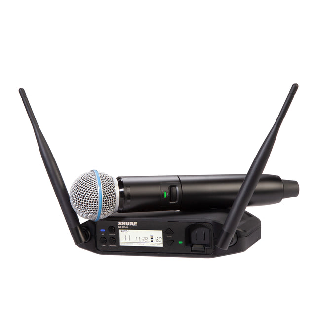 - Beta58A dynamic vocal microphone with built-in transmitter and tabletop GLXD4+ receiver with up to two channels.