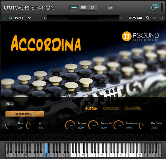 Accordina Accordina ist ein freies Reedinstrument, ähnlich der Harmonika. Es leiht sich seine chromatische Tastatur (44 Noten) von der Ziehharmonika. PSound Accordina wurde bis zu 6 Schichten und 3 Artikulationen für mehr als 400 Samples (300MB Speicher) aufgenommen.