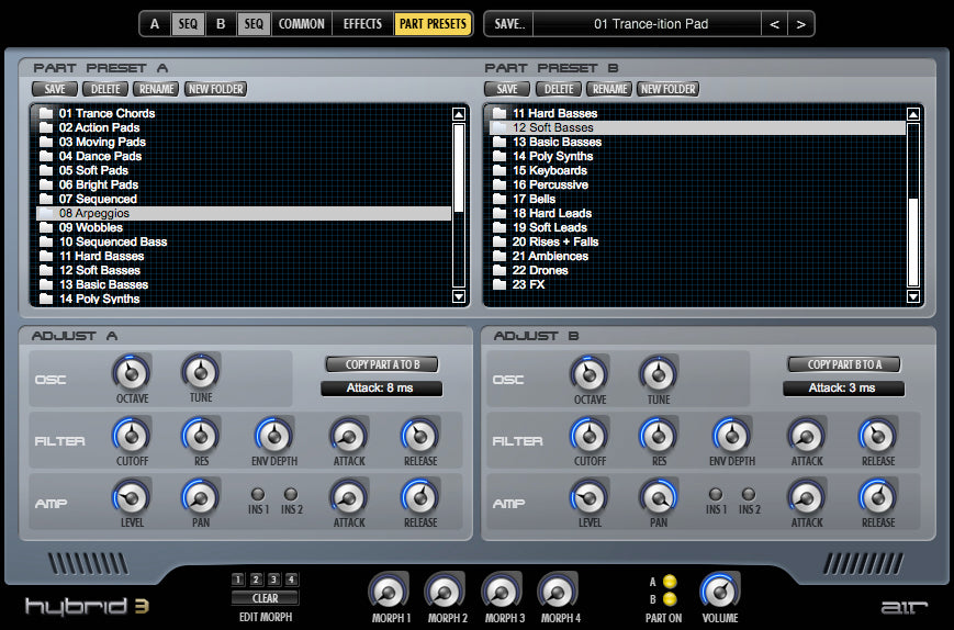Hybrid 3.0 ist die nächste Generation der Synthesizer. Dieser hochauflösende virtuelle Synthesizer vereint die begehrte Wärme analoger Synthesizer mit einer umfassenden Palette futuristischer digitaler Bearbeitungsmöglichkeiten. Das Ergebnis ist das Beste aus beiden Welten – ein virtuelles Instrument mit einer Vielzahl präzise einstellbarer Parameter, das entweder wie ein vertrauter Synthesizer oder völlig neuartig klingen kann.