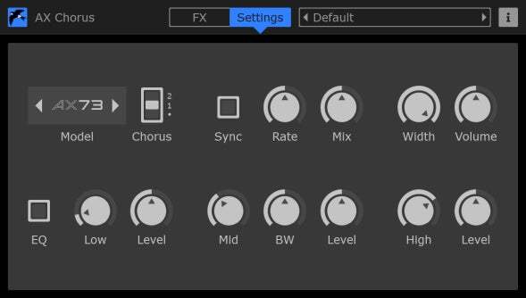 Der AX Chorus basiert auf dem ACE modellierten MN3009 Bucket Brigade (BBD) Chip, der sowohl in den AX73 als auch in den AX60 Synthesizern zu finden ist. Martinic hat ihr Plugin mit dem Chorus 100% identisch zu den Mono-Eingangsversionen entwickelt, die in den originalen Synthesizern zu finden sind, und dann die Option hinzugefügt, es zu einem Stereo-Effekt zu machen.