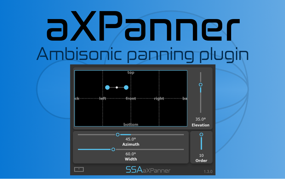 Der aXPanner ist ein Ambisonic-Encoder, der Ihnen die Kontrolle über den Azimut und die Elevation der Schallquelle sowie die Breite zwischen den Stereo-Eingangskanälen gibt. Die Wahl zwischen zwei Interfaces (equirectangular und top-down) ermöglicht es Ihnen, Ihren Sound einfach im Raum zu platzieren, um Ihre immersive Audio-Welt zu schaffen. Er ist in drei Variationen erhältlich: erster Ordnung, dritter Ordnung und zehnter Ordnung.