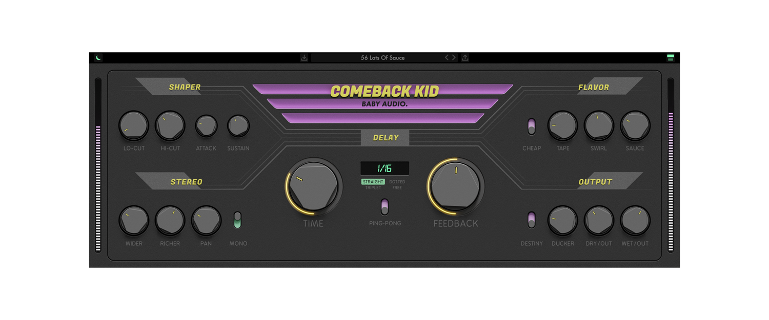 Comeback Kid bietet Ihnen eine makellose Klangqualität sowie die Vielseitigkeit, um eine Vielzahl von Mix-Aufgaben abzudecken, von subtilen Reflexionen bis hin zu hypnotischen Echos. Es könnte Ihr neues Go-To Delay werden!