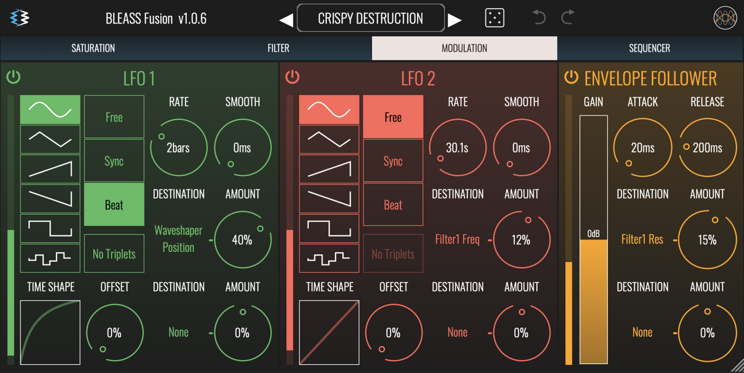 - DYNAMIC MODULATION LFOs and a motion sequencer add rhythmic, evolving movement to distorted textures.