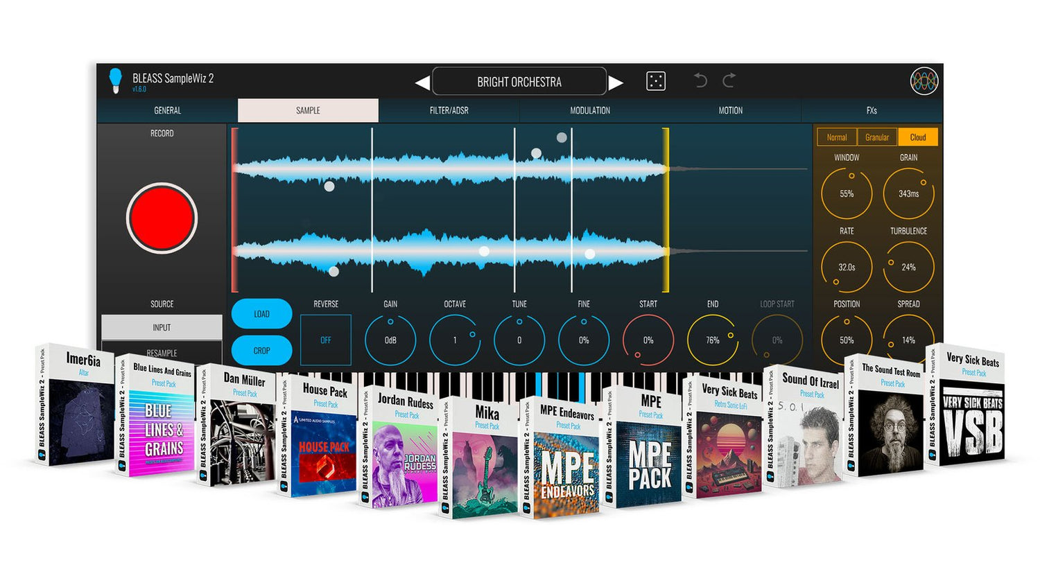 - VERSATILE SAMPLE ENGINE BLEASS SampleWiz 2 offers normal, granular, and cloud sampling modes for creative sound manipulation.