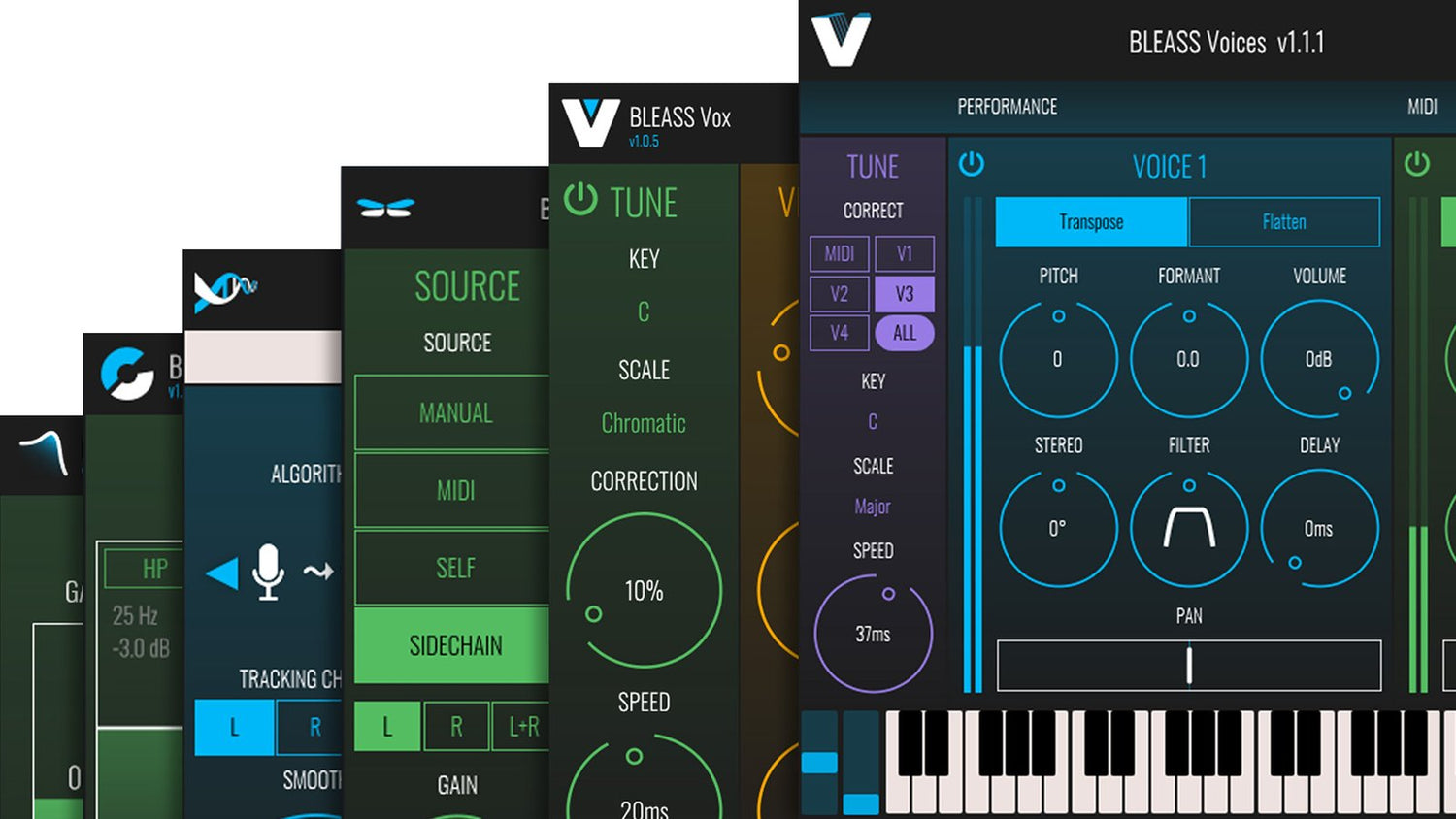 - DYNAMIC FILTERING BLEASS Filter sculpts vocals with an envelope follower and resonant filters for precise tonal control.