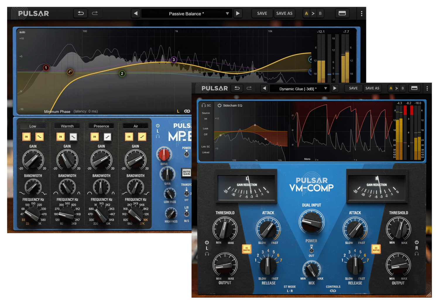 Dieses Bundle vereint Pulsars aktualisierten passiven Equalizer MP-EQ und den variablen Kompressor VM-COMP zu einem kompletten Mastering- und Mixbus-Toolkit. Zusammen bieten sie präzise Klangformung, transparente Dynamiksteuerung und den analogen Charakter der ursprünglichen Hardware-Designs.