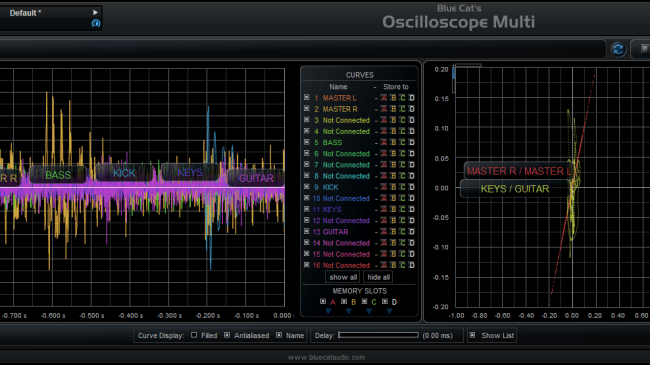 Blue Cat's Oscilloscope Multi ist ein einzigartiger Mehrspur-Renderer und -Vergleicher für Echtzeit-Wellenformen: Er ermöglicht es Ihnen, den Inhalt mehrerer Audiospuren auf demselben Bildschirm zu visualisieren und sie dank seiner X-Y-Ansicht zu vergleichen.