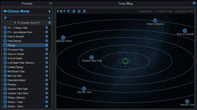 Trotz all dieser zusätzlichen Kontrollen und Möglichkeiten war es noch nie so einfach, deinen eigenen Klang zu finden: Tone Maps helfen dir, bestehende Presets zu erkunden und schnell neue Effekte zu erstellen.