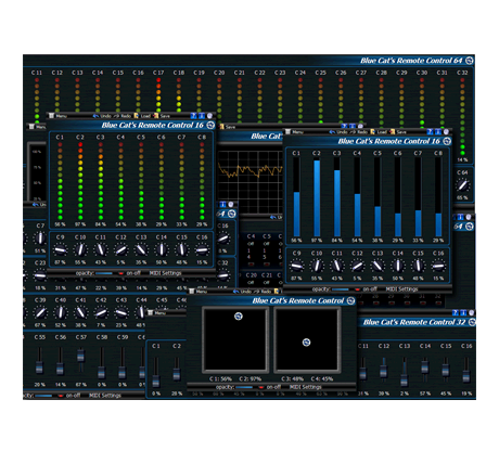 Blue Cat's Remote Control ist eine Sammlung von Plug-ins, mit denen Sie mehrere MIDI-kontrollierbare Plug-ins oder Geräte von einer einzigen anpassbaren Benutzeroberfläche in Echtzeit steuern und überwachen können.