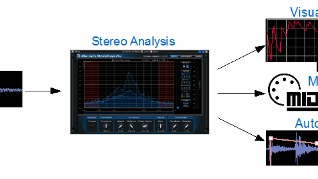 Wie bei unseren anderen professionellen Analysewerkzeugen können die Ausgabewerte dieses Plug-ins verwendet werden, um andere Effekte in Echtzeit zu steuern: die erzeugten Automatisierungs-Hüllkurven oder MIDI CC-Nachrichten umfassen die minimalen und maximalen Positionen im Stereo-Feld und die wahrgenommene Position basierend auf der Verteilung der Audioenergie im Stereo-Bild. Überprüfen Sie die DP Meter Pro Tutorials, um zu sehen, wie Sie diese Funktion in Ihrem bevorzugten Host verwenden können.