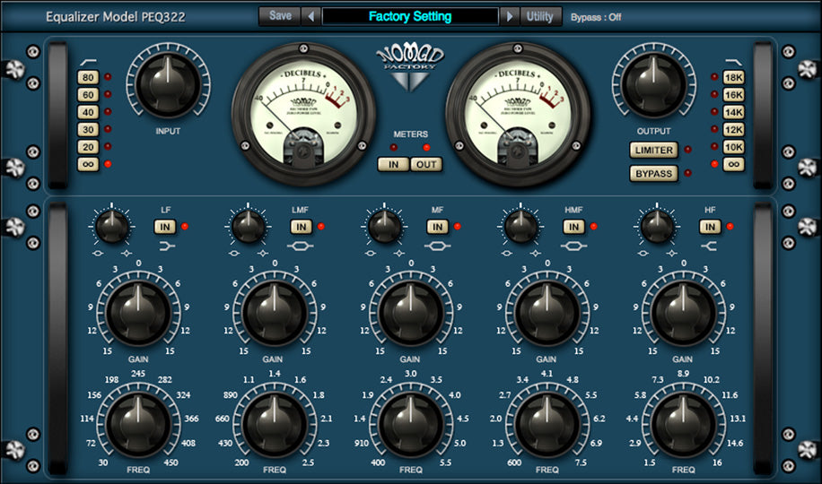 Der BT Equalizer PEQ322 wurde speziell für die anspruchsvollsten Studioaufnahmen entwickelt und verfügt über 3 parametrische Bänder mit Reglern für Mittenfrequenz, Bandbreite/Q und Amplitude, Hochpass- und Tiefpassfilter sowie Low-Shelf- und High-Shelf-Filter.