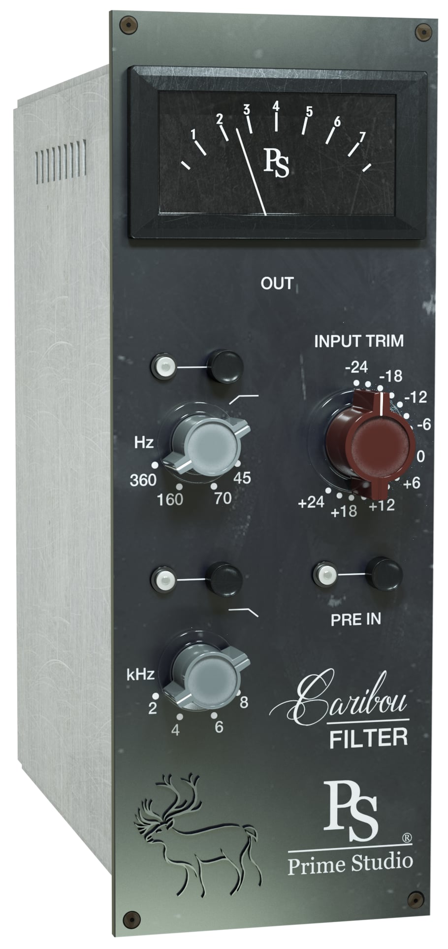 Prime Studio Caribou Filter ist ein Zweibandfilter-Tool, das auf einem seltenen Vintage-Vorverstärker-Modul basiert. Prime Studio Caribou Filter ist ein Hochpass- und Tiefpassfilter-Tool, das auf einem seltenen Vintage-Modul basiert. Neben den Filterbändern können Sie Vorverstärker-Harmoniken hinzufügen, um den Klang Ihrer Tracks zu formen. Wenn Sie Ihre tiefen und hohen Frequenzbänder reinigen und einfach nur etwas mehr Charakter zu Ihren Tracks hinzufügen möchten, indem Sie harmonische Vorverstärker-Verzerrung hinzufügen, ist Prime Studio® Caribou Filter die richtige Wahl. Stellen Sie mit dem Input Trim-Regler und der Aktivierung der Pre-In-Funktion den Punchiness eines Class A-Stil-Vorverstärkers aus den sechziger Jahren ein, und Ihre Tracks werden hervorstechen.