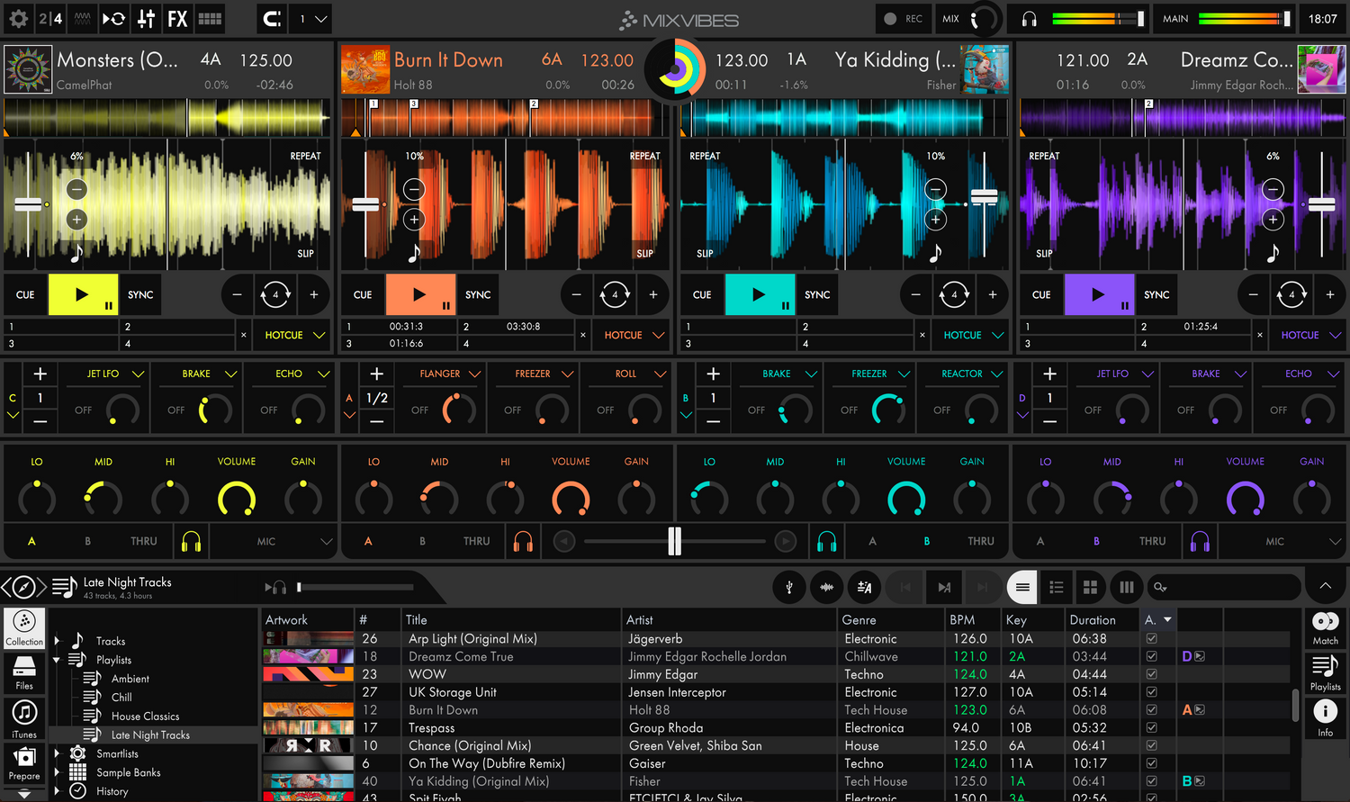 Gestalte jeden Mix einzigartig. Du kannst gleichzeitig mit 4 Spieler-Wellenformen arbeiten und pro Spieler 3 synchronisierte Audioeffekte hinzufügen. Mit dem Tweaker kannst du außerdem eigene Effekte erstellen.