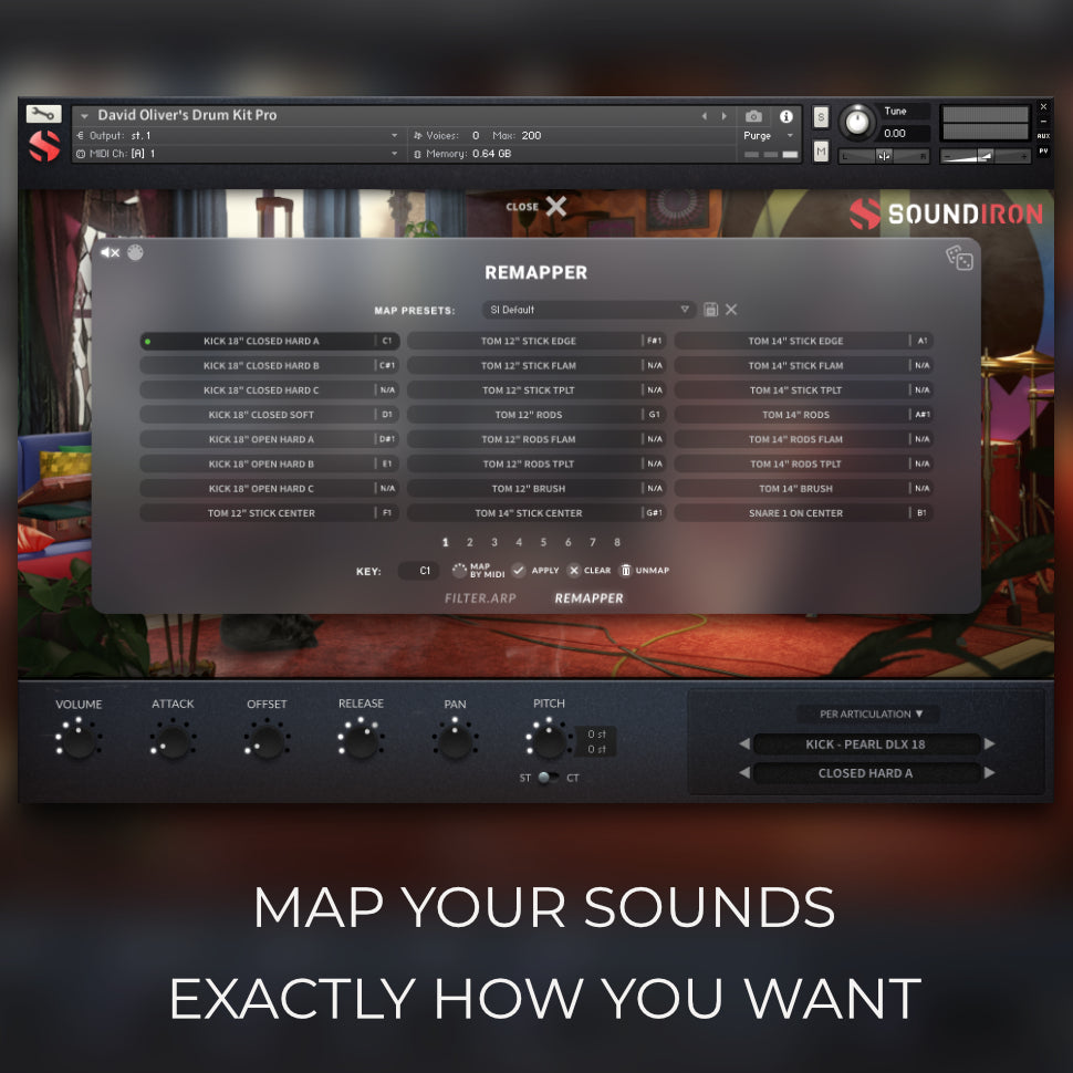 Die Kontaktoberfläche umfasst eine Suite von automatisierungsbereiten Klangformungssteuerungen, die Ihnen totale kreative Flexibilität bieten. Sie haben die Kontrolle über Swell, Attack, Release, Offset, Vibrato, Filter, Pitch (grob & fein), Artikulationswechsel, Crossfading und Layering und vieles mehr.