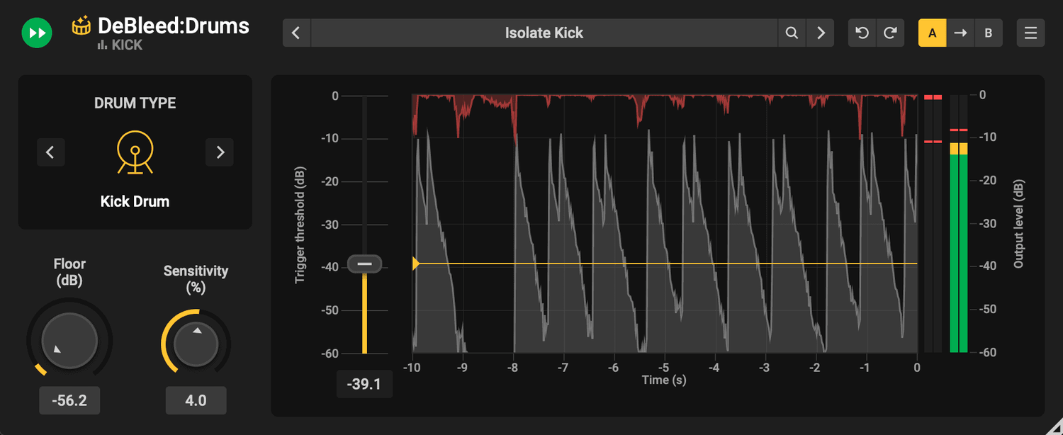 Für optimale Ergebnisse nutzt DeBleed:Drums neuronale Netzwerktechnologie, um Elemente des Schlagzeugkits, wie Kicks und Snares, zu trennen, während DSP-Algorithmen Transienten für Klarheit schützen. Seine intelligente Triggerlogik setzt Schwellenwerte, um Spill effizient zu entfernen und liefert eine sauberere und natürlichere Schlagzeugmischung.