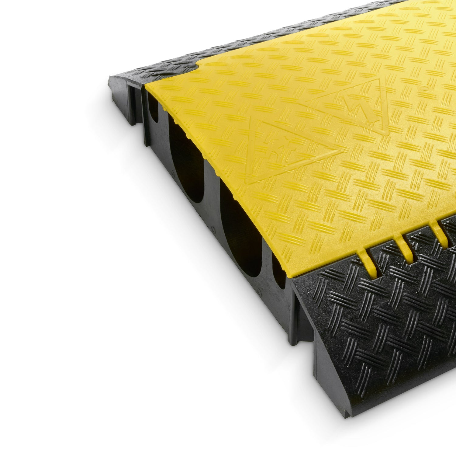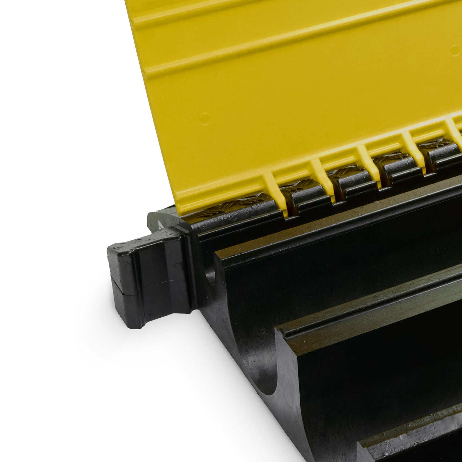 - Heavy duty cable protector made of black, recyclable polyurethane for demanding applications