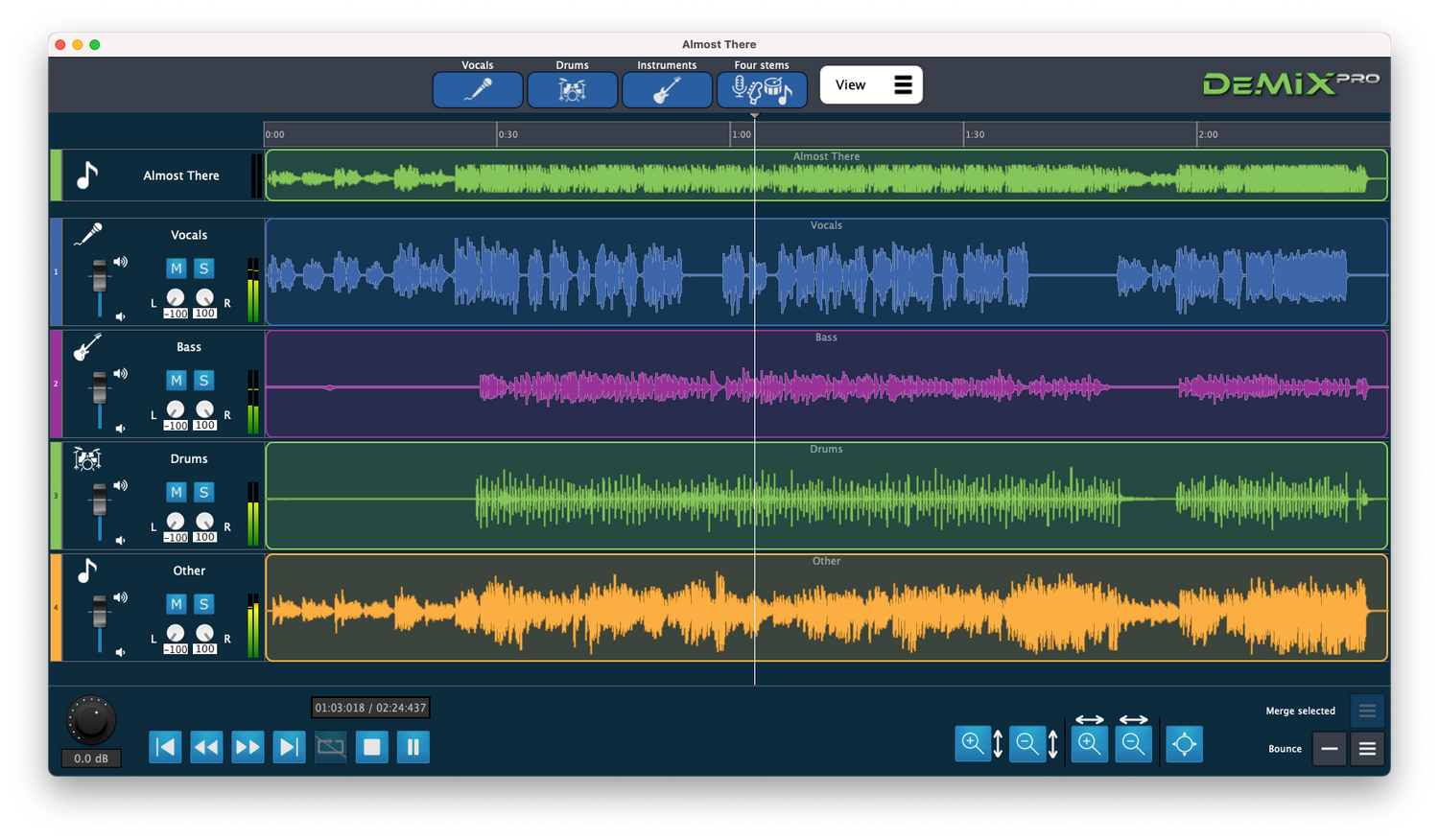 DeMIX Pro is standalone software that combines cutting-edge AI stem isolation algorithms, providing audio and mastering engineers, remixers, producers, DJs, and musicians with unrivalled freedom to remove vocals, drums, bass, electric guitar, piano, strings, and other instruments from existing mixes. This powerful tool is perfect for those looking to perform vocal removal, guitar removal and other stem removal tasks with precision and ease