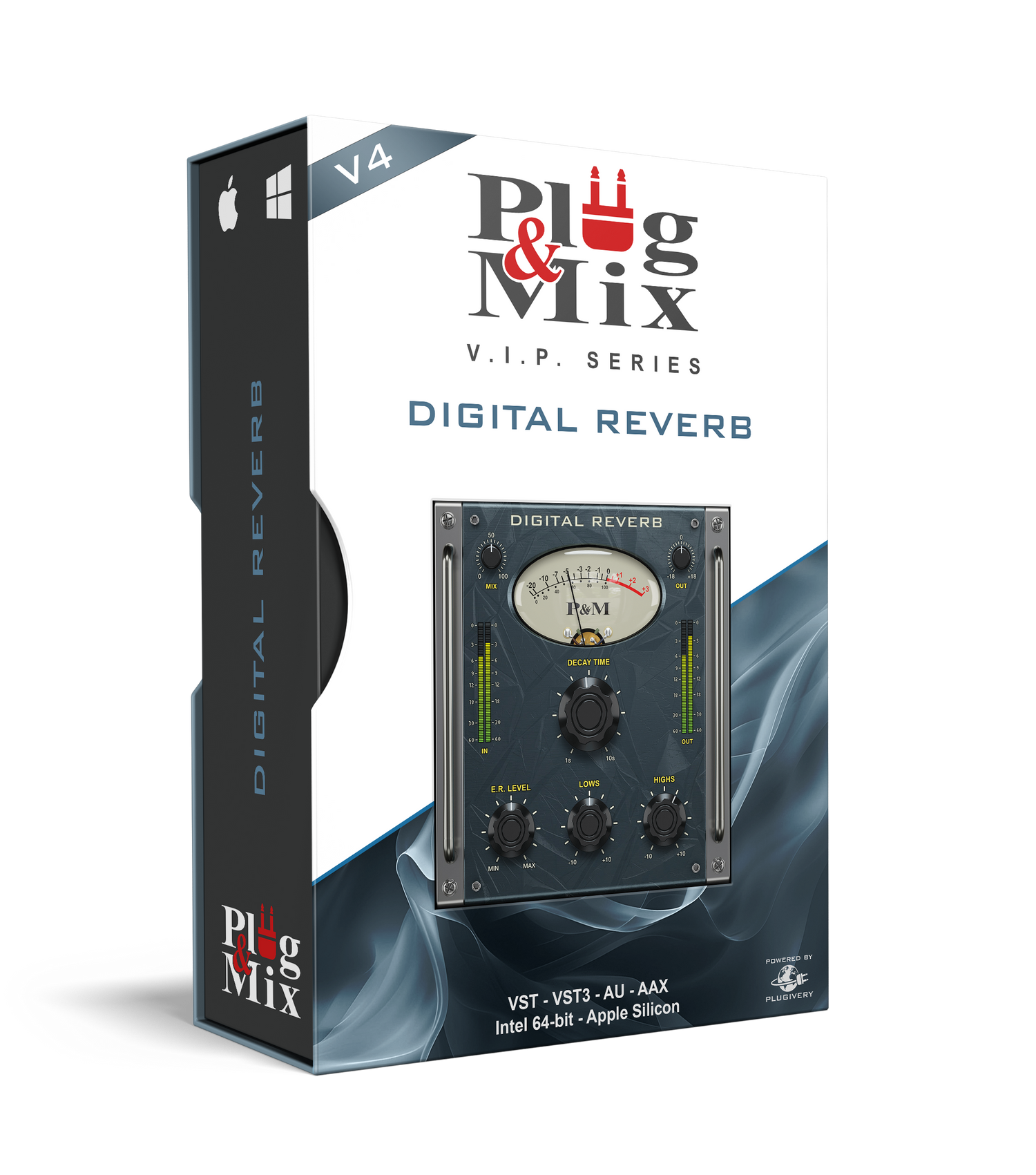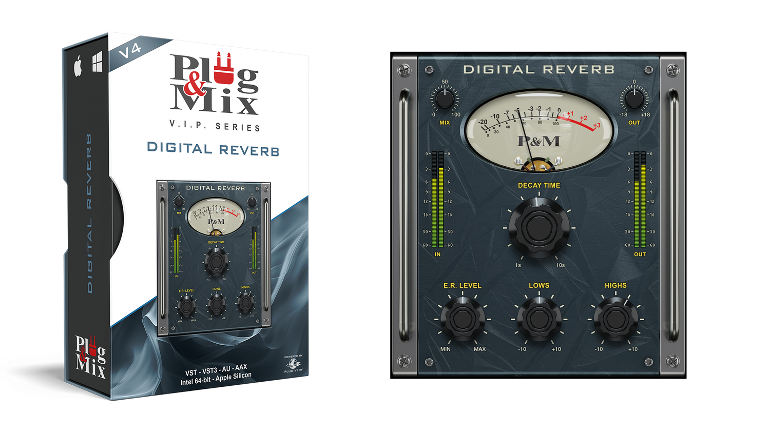 The "ER Level" knobs allows you to control the levels of the Early reflections while the "Lows and Highs" dial in the tone of the reverb. The big "Decay Time" knob controls the length of the reverb while the "mix and output" knobs reside in the upper left and right hand corners.