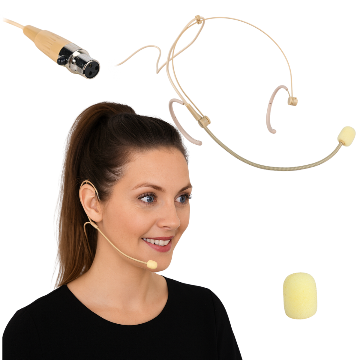 Den medfølgende vindhætte reducerer effektivt åndedræts- og vindstøj, så stemmen gengives klart og naturligt. Det lange kabel giver god bevægelsesfrihed og gør mikrofonen velegnet til både sceneoptrædener, konferencer og træning.
