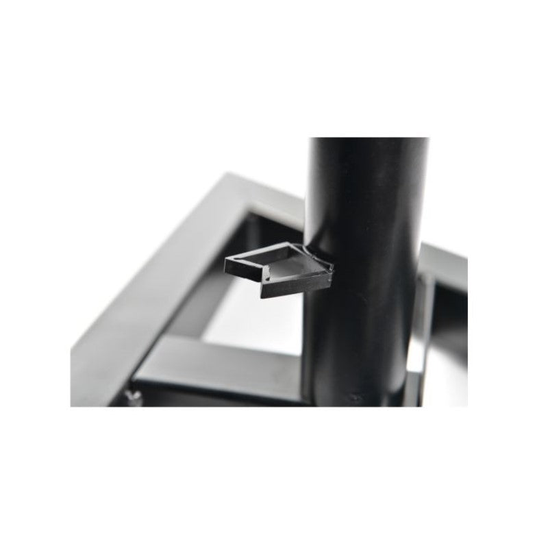 DNA MON 1 is a set of two sturdy, professional studio monitor stands. The stands are entirely made of black powdercoated steel. The lower base of each is shaped like an equilateral triangle. It has screwon, nonslip feet that allow the entire stand to be leveled. It also comes with spikes, which are great for carpeted surfaces. The top monitor stand is square in shape. Two nonslip strips glued to it eliminate any resonant vibrations generated by the loudspeaker and effectively hold it in place. The stand, in addition to the minimum level, has a fivepoint height adjustment. It extends to a maximum height of 133 cm, and the pin protection makes it suitable for holding even heavier loudspeakers. In addition, the pole is equipped with two hooks for convenient and aesthetically pleasing routing of cables in them. All this makes each of the MON 1 monitoring stands a comfortable, wellthoughtout and solid design, which is perfect for professional and home recording studios. At the same time, these are relatively inexpensive studio monitor stands at the best price from Music Express! Technical specification Pieces 2 Material powdercoated steel Color black Min. height 76 cm Max height 133 cm Monitor top base dimensions 23 x 23 cm Bottom base dimensions 43 x 43 x 43 cm Height adjustment fivepoint Sliding protection pressure pin Single stand weight 3.4 kg