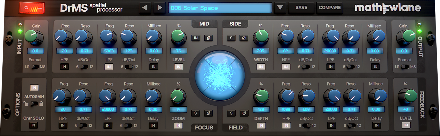DrMS ist ein einzigartiger Raumprozessor, der als AAX/AU/VST/VST3-Plug-in erhältlich ist und ein breites Anwendungsspektrum für Mixing, Mastering und Postproduktion bietet – von der einfachen MS-Codierung/Decodierung (Mid-Side) über die Verbesserung der Stereofeldbreite und -tiefe bis hin zur Behebung von Mono-Kompatibilitätsproblemen und vielem mehr.