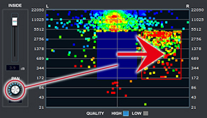 Sie können den Innen- und Außenbereich des spezifischen Teils, auf den fokussiert wird, unabhängig durch Panning und Frequenz steuern. Sie können Effekte (Kompressor und Hall) auf den Innen- und Außenbereich anwenden und Lautstärke und Panning intuitiv anpassen.