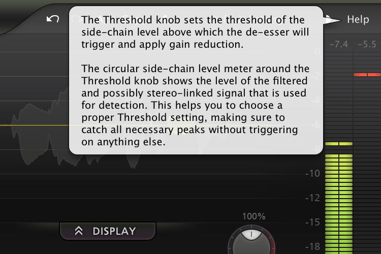 - Real-time de-essing display, clearly showing the affected parts of processed audio