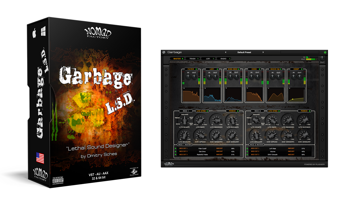 GARBAGE LSD ist ein abgefahrenes Audio-Transformations-Plug-in mit anpassbarer Signalkette und dualer Modulationsmatrix. Es bietet eine Reihe extremer Module, um Sounds zu manipulieren, zu verzerren, zu zerstören und zu transformieren – mit radioaktiver Modulation, verzerrten EQs, verzerrenden Faltungen und fiesen Filtern, um nur einige zu nennen.