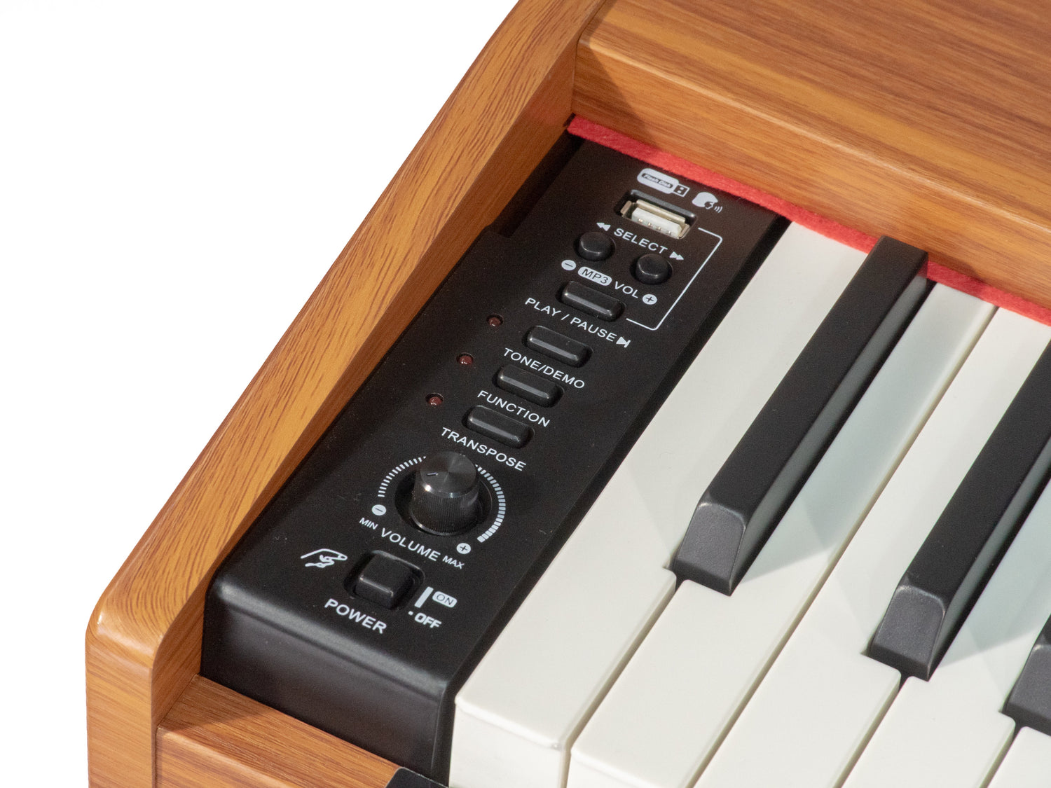Der Grooveland DDP-140 enthält 40 integrierte Demo-Songs und ermöglicht die MP3-Wiedergabe, sodass Sie zu Ihren Lieblingssongs mitspielen können. Dank der zwei Kopfhörerausgänge können zwei Personen gleichzeitig üben – ideal zum Unterrichten oder für ungestörtes Üben.