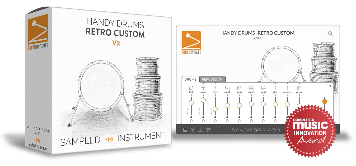 Der Retro Custom Drumset-Sound ist trocken, warm, punchy, tief mit kurzer Sustain und trockener Raumakustik.