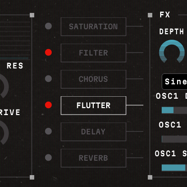 ? 6 vollständig anpassbare Effekte-Module - Saturation, Filter, Chorus, Delay, Reverb und Flutter (ein authentischer wackeliger Kassettensound)