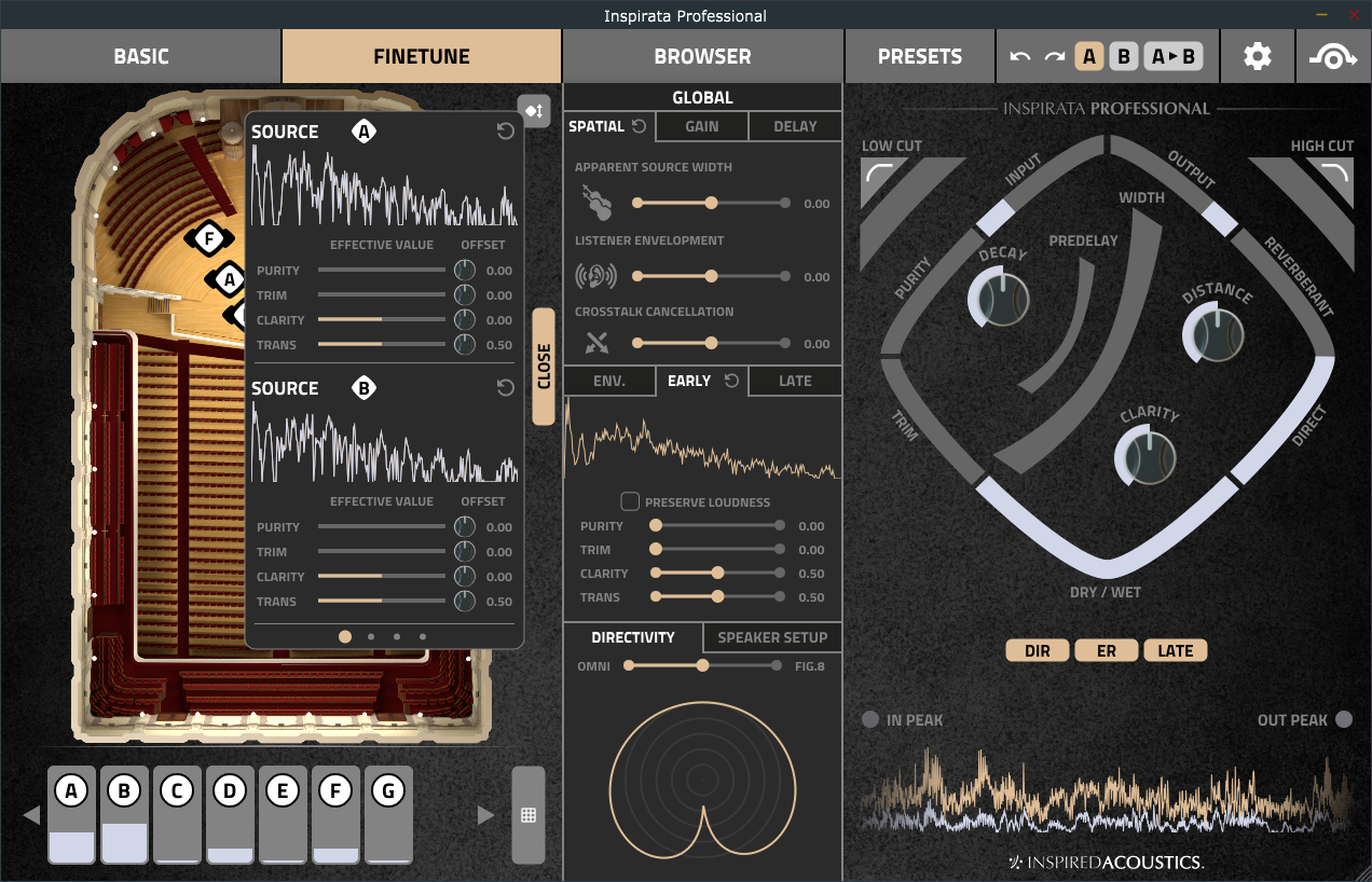 In der Postproduktion können Sie INSPIRATA verwenden, um die Bewegung Ihrer Klangquellen in jedem Raum zu automatisieren, von nah bis fern, von links nach rechts, sowie alle akustischen Parameter. Der Klang folgt sofort und klingt so, als wären Sie im Raum - nur ohne den Umgebungsgeräusch. Dieses beispiellose Feature macht INSPIRATA zu einer echten Arbeitsstation für räumlichen Klang.