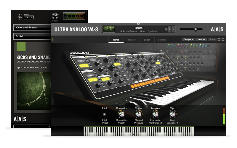 You can never have too many kicks and snares! Resident sound designer Adam Pietruszko signs off on an expertly crafted and clever collection of punchy bass drum and cut-through snare presets in this new sound pack for Ultra Analog VA-3.