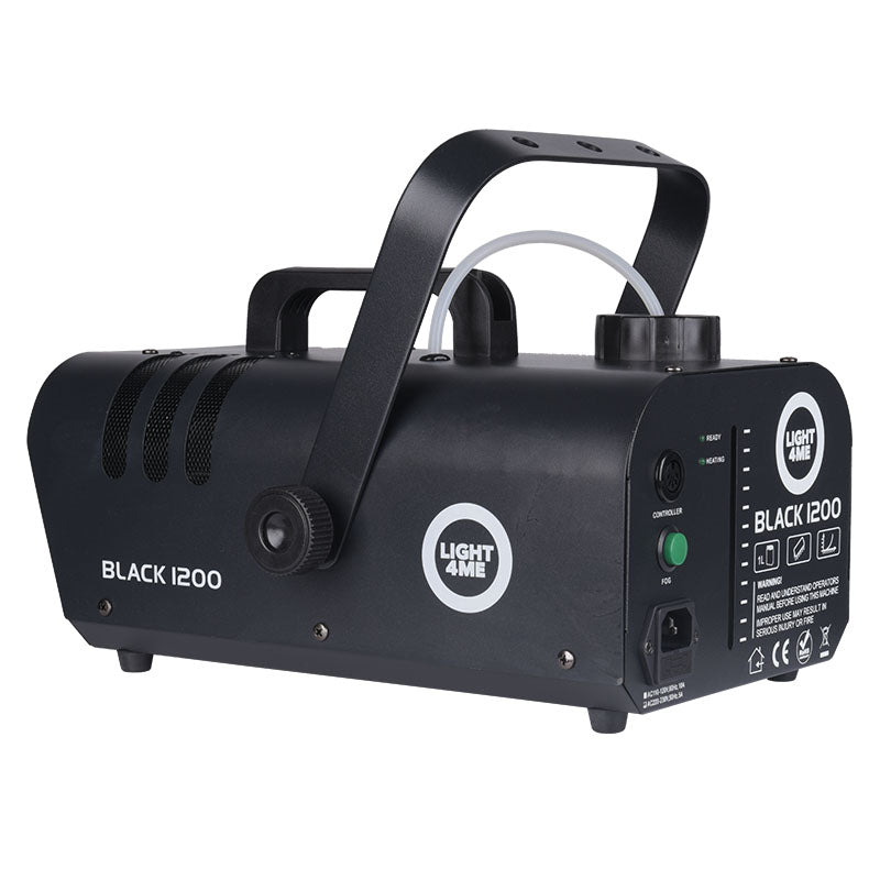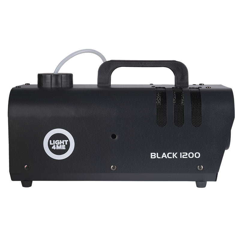 LIGHT4ME BLACK 1200 is a small and relatively lightweight smoke generator fog machine with 850 W of power and high efficiency. The machine can be operated by a wired or wireless remote. It is perfect for small music and theater stages, dance clubs and discos, as well as during various types of special events. The smoke machine is ready to operate in just 4 minutes, and the use of modern heating technology protects the heater against clogging. The electronic thermostat function enables the emission of smoke at any time after the initial heating.The components of the Black 1200 fog generator are enclosed in robust, metal housing equipped with a mounting bracket so that the device can be installed on stage structures, stands, trusses or specially adapted clamps. In the upper part there is a container for liquid with a capacity of 0.8 liter. In the front, you can find an outlet nozzle. On the rear panel there is a power switch and a socket for connecting the wired controller. The generator can also be operated wirelessly using the included remote.Black 1200 is an interesting proposal for a smoke machine from the Light4Me brand. The device is easy to use, and thanks to its low weight and small size, it is very mobile. The emitted fog is perfect for indoor stages, clubs and various types of entertainment events. It creates a perfect environment for spotlights and arranges an interesting atmosphere in rooms. This is a versatile and relatively lowcost smoke generator from ournbspstore!nbspnbspTechnical specificationPower supply AC 220230V, 5060HzPower consumption 850WFuse 5AHeatup time 4 min.Output 340 m3min.Tank capacity 0,8LLiquid level sensor yesElectronic temperature control yesWired remote X2Wireless remote W1Dimensions 33 x 25.3 x 18.7 cmOriginal packaging and filling.
