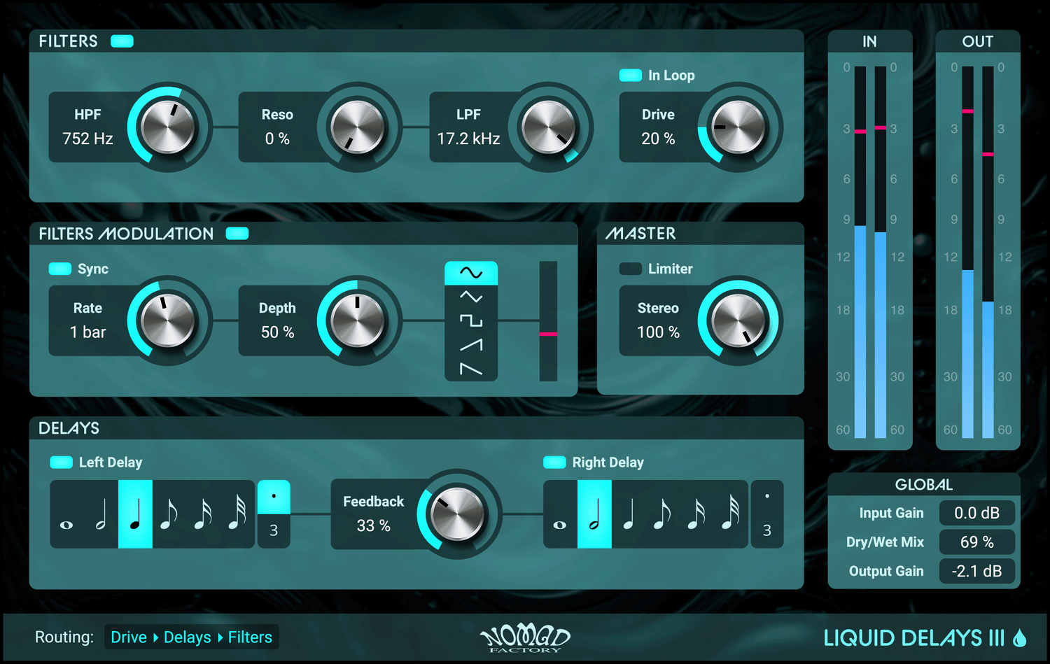 Die vollständig skalierbaren Vektor-Oberflächen bieten elegante dunkle und helle Designs und ermöglichen so eine einfache Anpassung Ihres Arbeitsbereichs. Von subtiler Dynamiksteuerung und Delays im Vintage-Stil bis hin zu üppigen Hallräumen und vielfältigen Modulationsmöglichkeiten liefert Liquid Bundle III den authentischen Sound und den intuitiven Workflow, auf den Nomad Factory seit über zwei Jahrzehnten vertraut.
