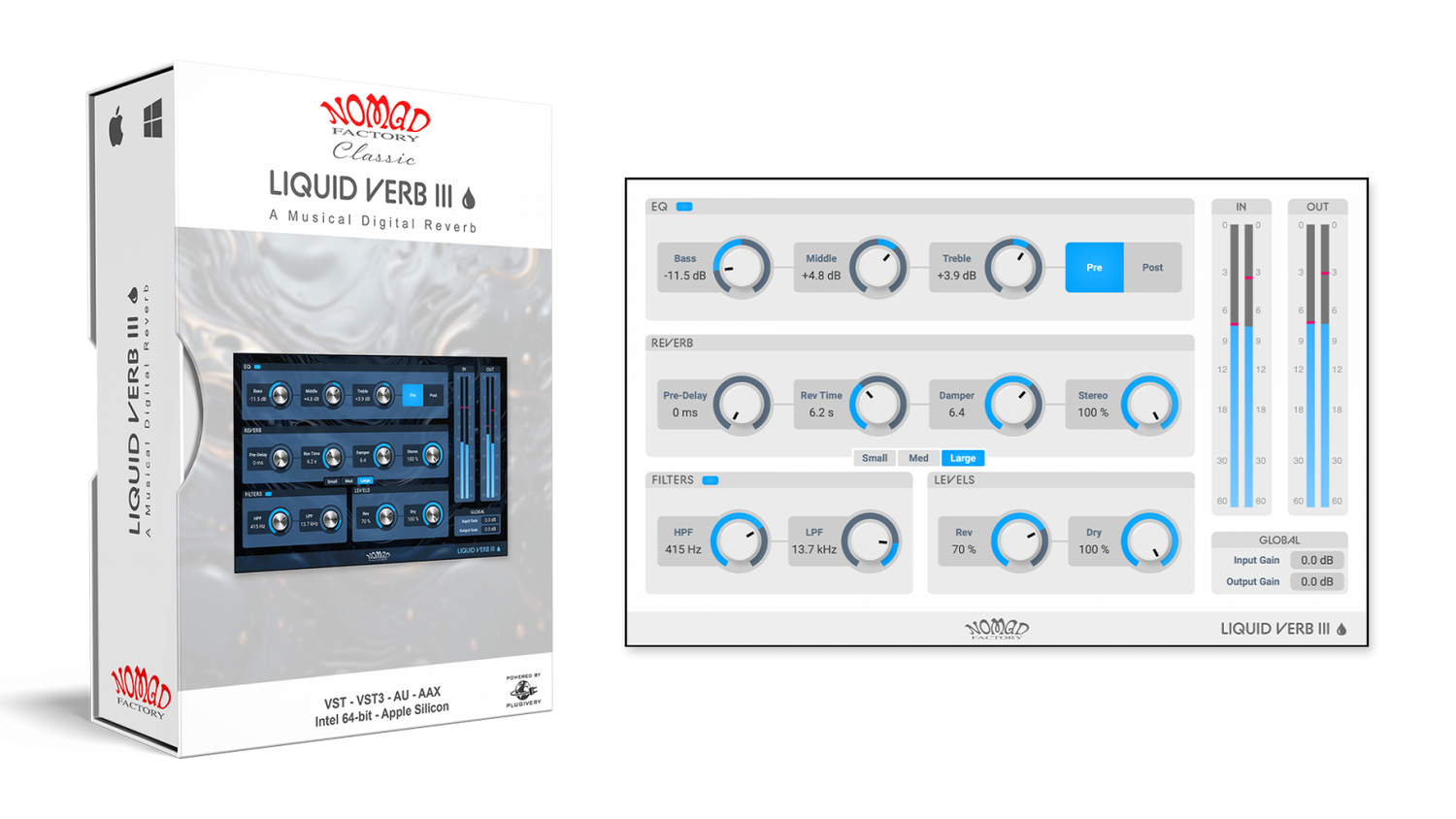 Die Parameter für das Wet/Dry-Verhältnis und die Stereobreite ermöglichen eine präzisere Steuerung von Platzierung und Tiefe. Mit seinen anpassbaren Dark- und Light-Themes und der optimierten Performance schlägt Liquid Verb II die Brücke zwischen klassischer Ambient-Musik und modernen Produktionsstandards.