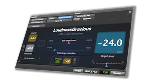 Loudness Gracious vereint das legendäre Level Riding von WaveRider mit der Lautheitsdetektion von Defaulter, um eine sanfte, präzise Lautheitskontrolle in einem Offline-Workflow zu bieten. Egal, ob Sie für Rundfunk, Film, Spiele, Podcasts oder Musik mischen, Loudness Gracious bringt Sie zu genauen LKFS/LUFS-Werten, während es die Dynamik sanft mit einstellbaren Verhältnissen formt. Das Ergebnis? Sauberer, natürlicher Klang — schnell.